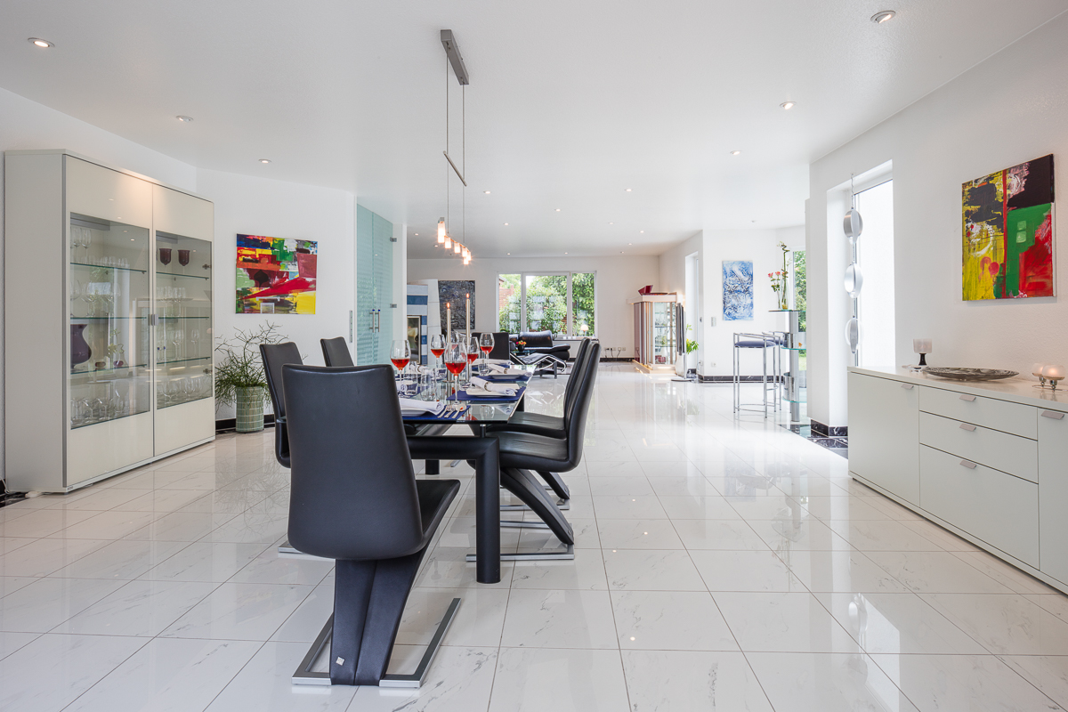 Bewegen Sie die Regler in der Mitte nach links und rechts, um den Unterschied zwischen Amateur- und Immoprofiaufnahmen zu sehen.